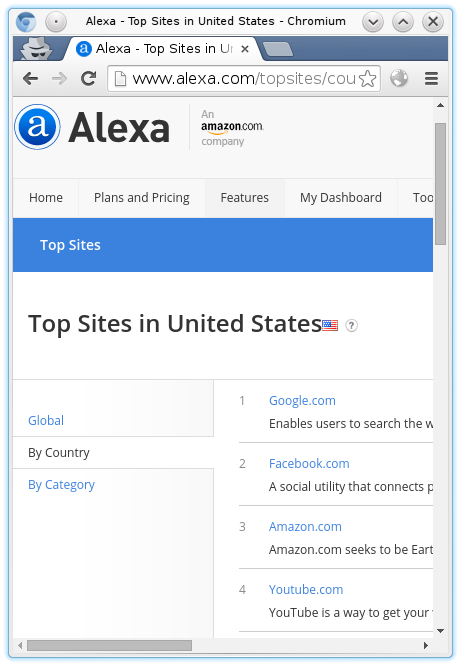 If, however, you ask people (in the United States, for example) what the internet is, most would probably respond with a few of their favorite websites including Google.com, Youtube.com, Facebook.com, or Instagram.com. We can see this clearly in Alexa's top site list for the US. These are websites that have built the concept of the Internet, in the United States.